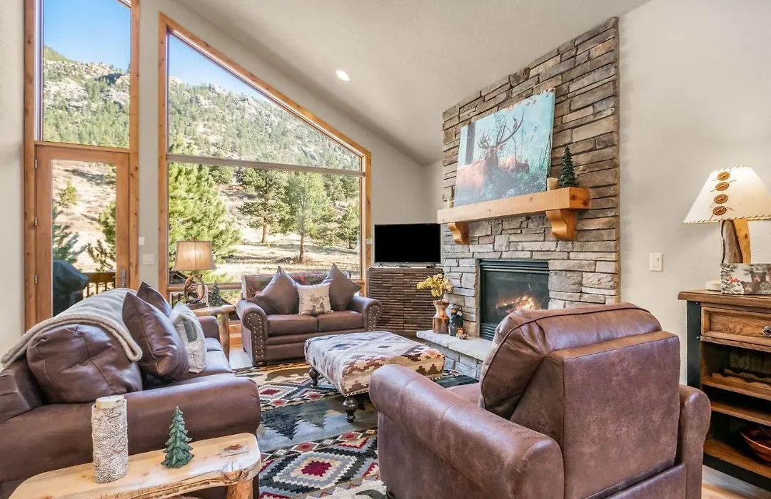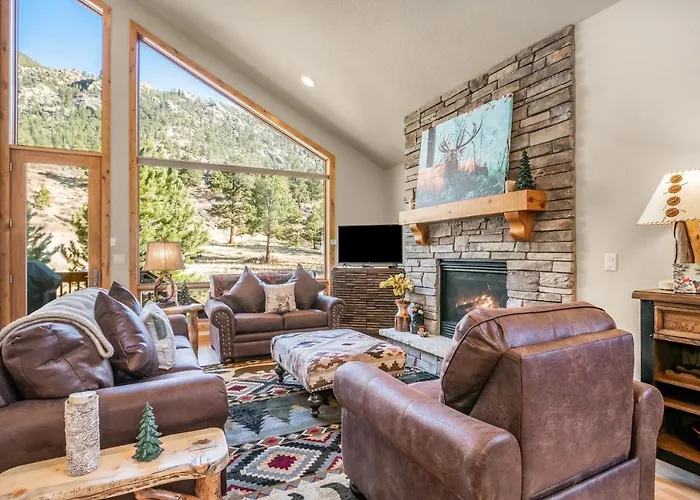 De gesitueerde in Estes Park River Rock Retreat -- Ev #6032 Condo Estes Park ligt op rijafstand van 10 minuten vanaf Many Parks Curve Overlook en nodigt gasten uit om aan sneeuwskiën, wandelen en skiën deel te nemen.